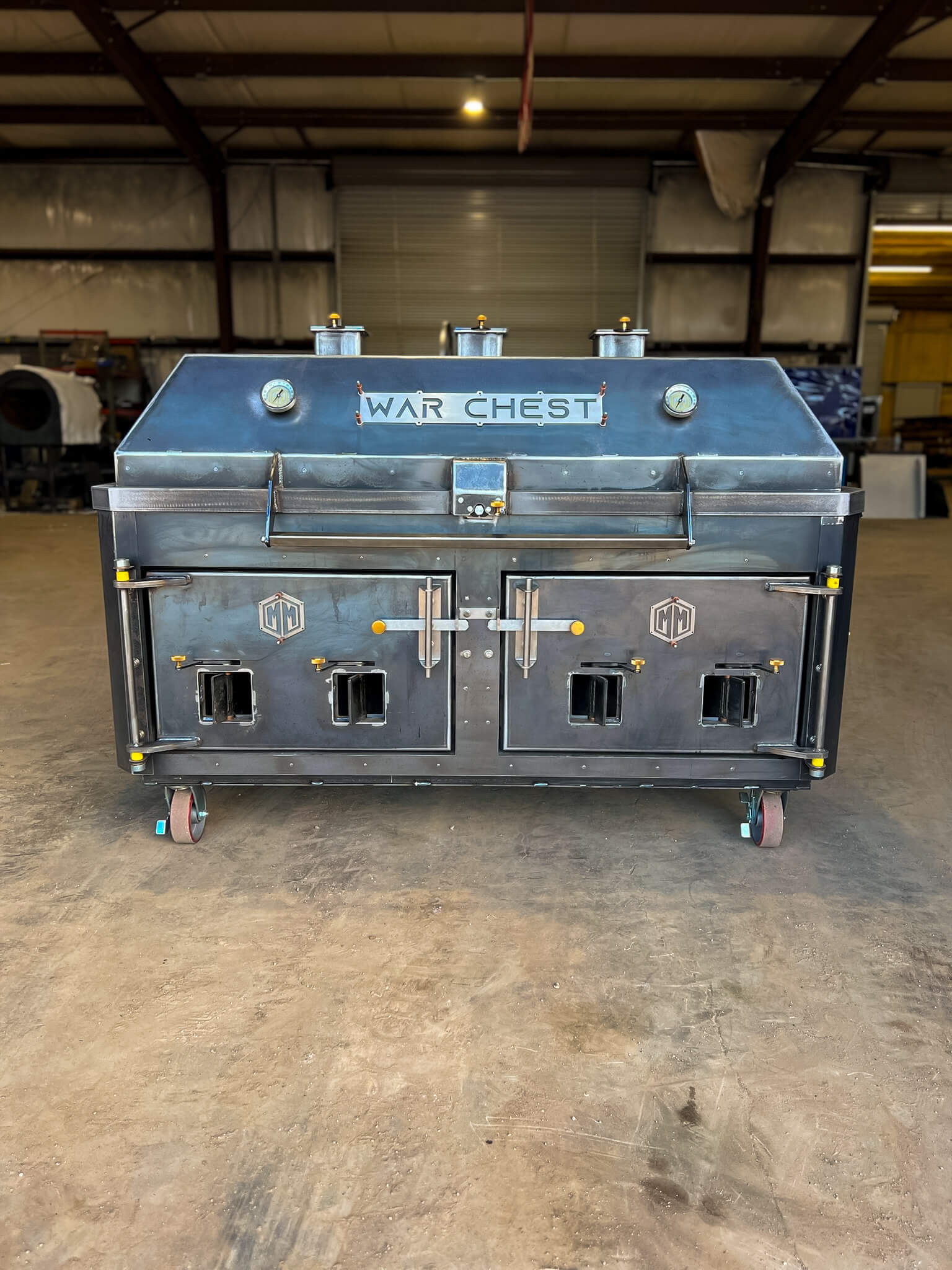 Our woodfire grills come in standard sizing but we can make one to custom sizes as well. We also offer a direct heat cooker, War Chest.